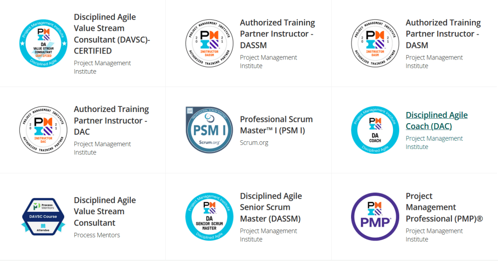 2020-2021 PMI Basic Training Partner for Disciplined Agile, PMI ATP for Disciplined Agile